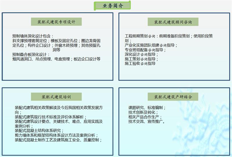 承攬【裝配式建筑】設(shè)計、咨詢、培訓、檢測認證、產(chǎn)研等業(yè)務(wù)